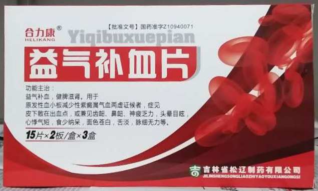 益气补血,健脾滋肾。用于原发性血小板减少性紫癜属气血两虚证候者,症见皮下散在出血点,或兼见齿衄、鼻衄、神疲乏力,头晕目眩,心悸气短,食少纳呆,面色苍白,舌淡,脉细无力等。