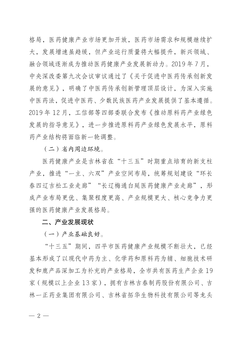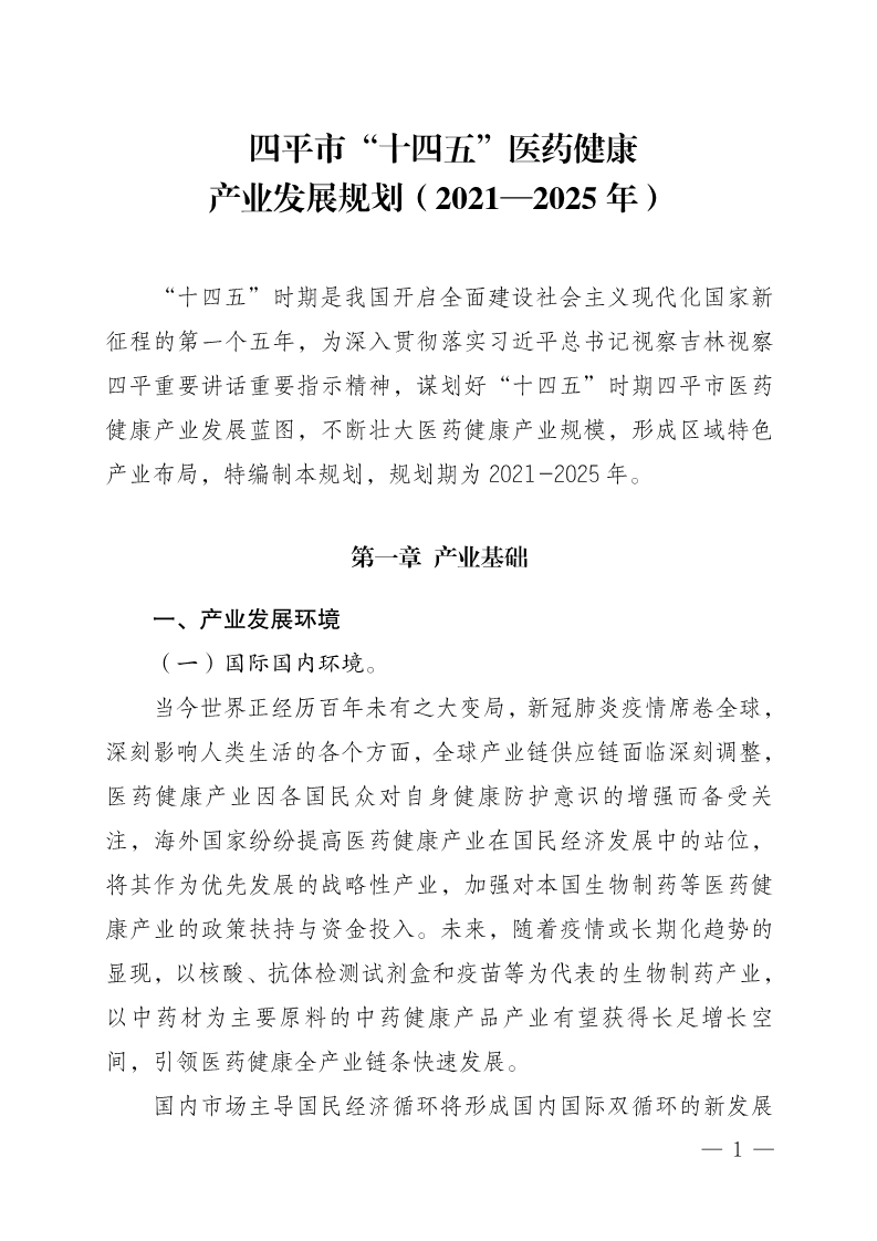 四平市“十四五”医药健康产业发展规划(2021—2025年)