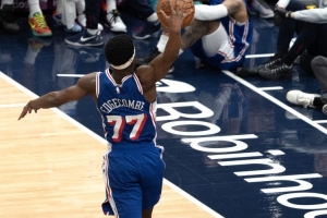 此役,76人探花秀埃奇库姆有着出色发挥。他出战35分18秒,投篮20中12,三分10中6,没有罚球,得到30分10篮板2助攻2抢断。