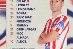 穆索、莫利纳、普比尔、丹尼尔·马丁内斯、普利奇、巴里奥斯、拉亚内、伊克尔、莫尔西略、格列兹曼、朱利亚诺·西蒙尼、库博