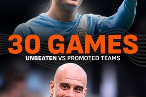 在击败伯恩利后,曼城在英超联赛中对阵升班马球队已保持连续30场不败。