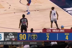 第三节比赛,掘金球星约基奇终于开始发力,单节投篮6中4,三分球2中1,罚球7中7,砍下16分7篮板,整个上半场约基奇才拿到6分。