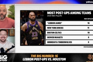 詹姆斯前两战背身单打16次 已超其余所有季后赛球队背身单打次数