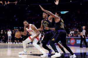 真正的问题是,减少谢泼德时间后,火箭的防守没有改善。肯纳德与斯马特继续自由飞翔,勒布朗梦回18,湖人射出46.4%的三分命中率,火箭防守徒劳无功。这一端要分两部分去看:
