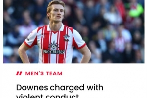 官方:南安普顿中场唐斯被禁赛3场,错过对阵曼城的足总杯半决赛