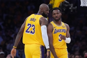 😲NBA季后赛历史首次父子连线!詹姆斯送空接 布朗尼反篮打进!