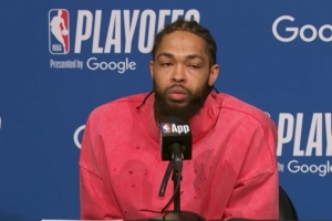 记者:跟进一个关于巴恩斯的问题,特别是当你们在克利夫兰0-2落后之后。就领导力而言,你从他身上看到了什么?比如他给你们传达的信息,以及在过去这几场比赛中他是如何展现这种领导力的?