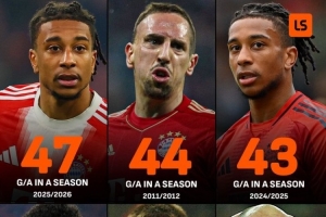 据LiveScore数据统计,奥利塞本赛季各项赛事直接参与进球数超过拜仁队史近年来任何一名边锋。